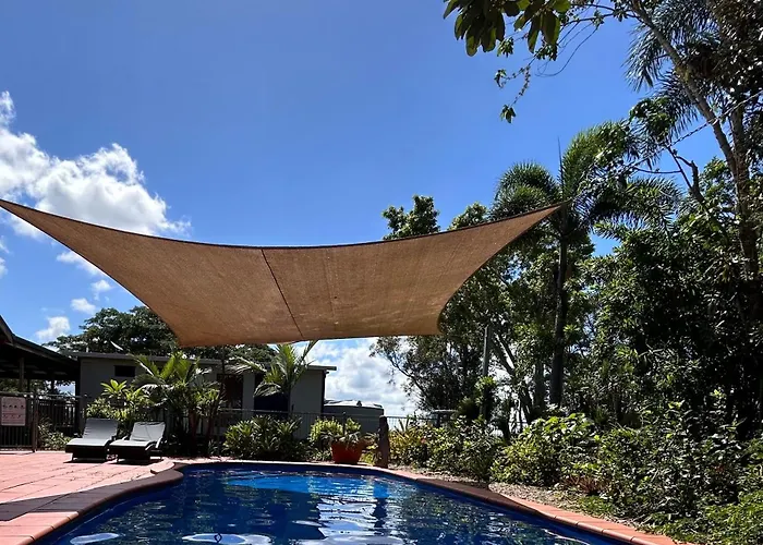La Feng Shui Sugarcane Cabin Proserpine ofrece una terraza con vistas a la piscina y se encuentra a 54 minutos en coche del aeropuerto Isla Hayman.